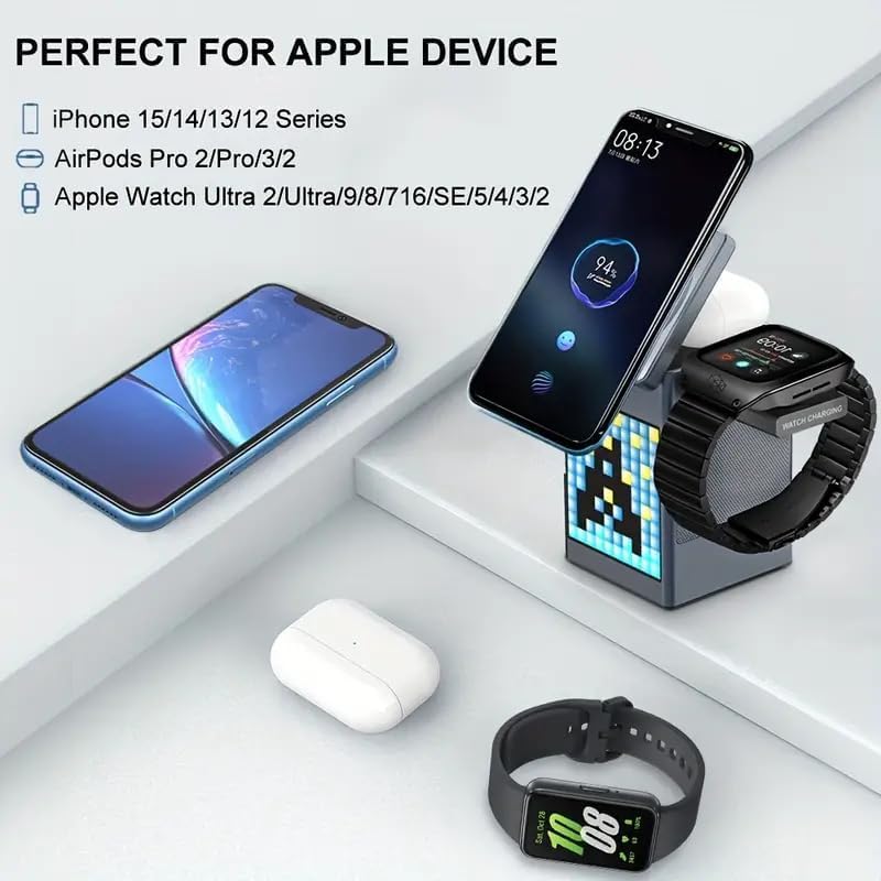 ⚡ Fast Wireless Charging: Supports Qi-enabled smartphones, smartwatches, and earbuds simultaneously.